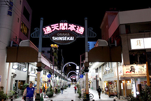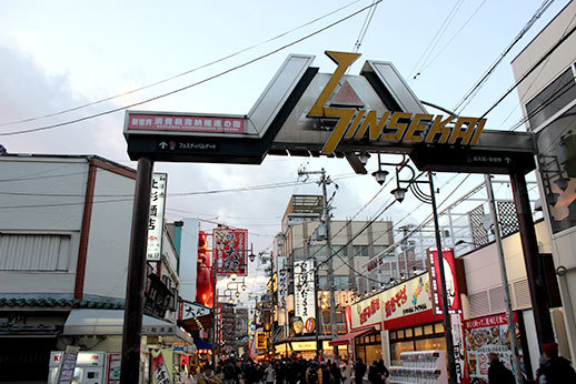 Ce quartier, dont le nom veut dire « nouveau monde » en japonais, été conçu pour être moderne, et montrer la force d’un Japon qui s'industrialise. Aménagé en 1912, il s’inspire de villes comme Paris ou New York, et abritait un Luna Park.