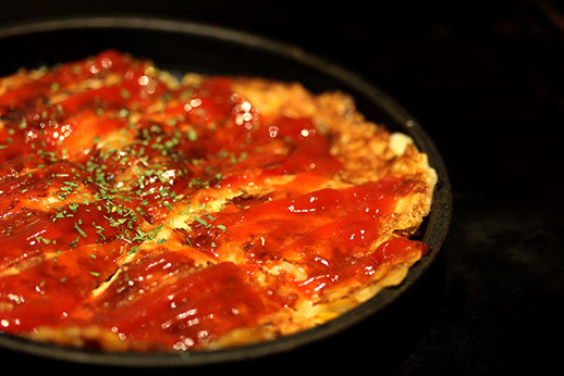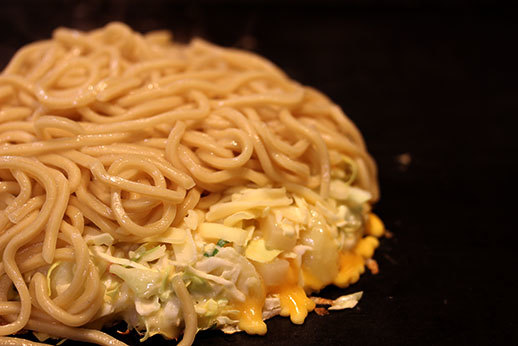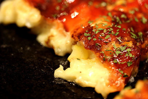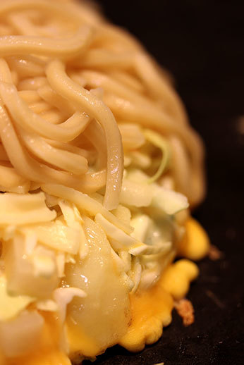 Nous avons eu la chance de trouver des Okonomiyaki végétariens. Nous voulions vraiment essayer ce plat originaire de cette région du Japon, qui est une sorte de crêpe ou pizza japonaise. Ceux que nous avons goûté étaient notamment au mochi (gâteau de riz gluant) et au chou ! C’était notre premier contact avec ce plat japonais et nous avons adoré.