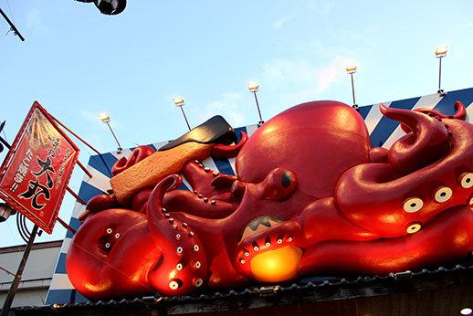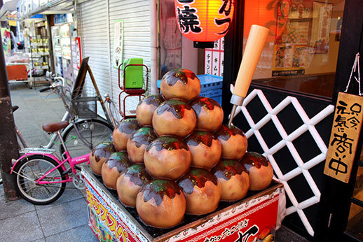 Ce qui attire notamment en grande partie les visiteurs, c’est la cuisine locale, bon marché et savoureuse. Bien sûr, en étant végétarien, cet intérêt est tout relatif, car parmi ces spécialités, on trouve les brochettes de viande ou les takoyaki, brochettes de poulpe ! Nous avons vu cependant quelques brochettes de légumes, que nous n’avons pas goûtées, mais qui ont la mérite d'exister.