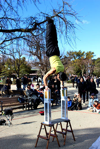 Dans la zone plus proche du château, des streets performers se relaient pour offrir des spectacles aux visiteurs. Nous avons pu admirer des acrobates dont les performances étaient vraiment étonnantes !