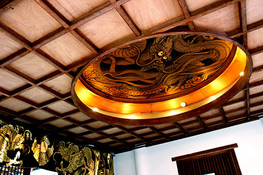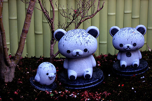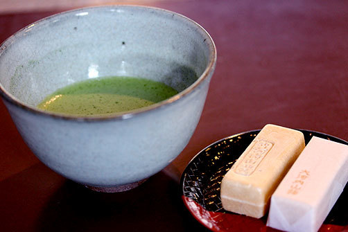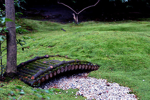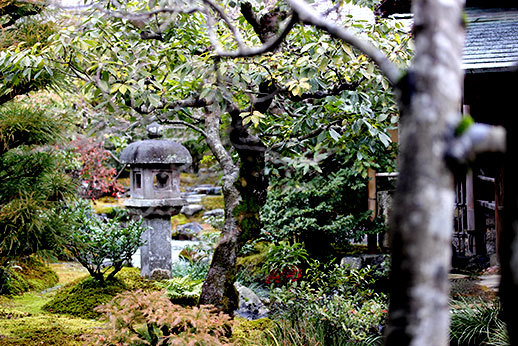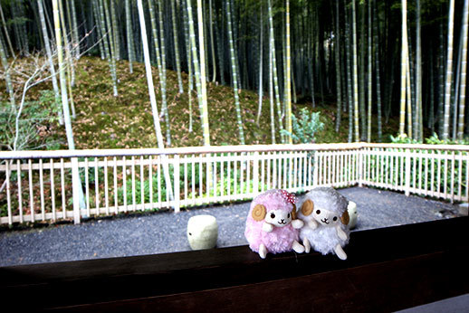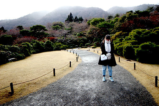 Au bout du chemin se trouvait Ôkôchi Sansô, l’ancienne maison d’un acteur japonais. Nous l’avions repérée dans notre guide, mais le prix nous avait un peu rebuté : 10 euros la visite du jardin. Nous avons cependant décidé d’y aller quand même, l’avis du guide étant très positif, parmi les choses à ne pas manquer. Nous n’avons effectivement pas été déçus car le jardin est magnifique. Pas très grand cependant, donc le prix de 10 euros n’est peut-être pas justifié, mais nous avons quand même eu le droit à un thé et deux tout petits gâteaux délicieux, offerts sur présentation d’un coupon que l’on nous donne à l’achat des tickets.