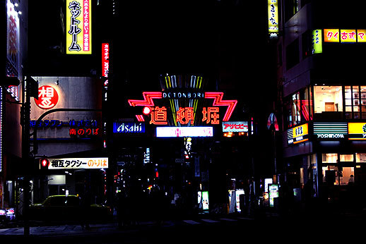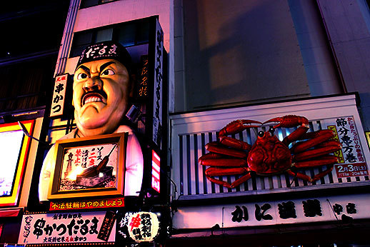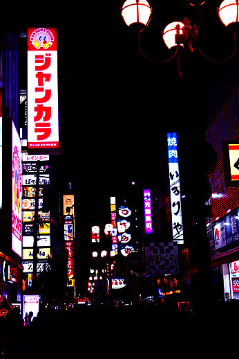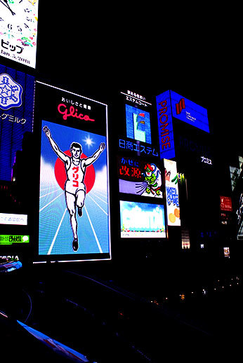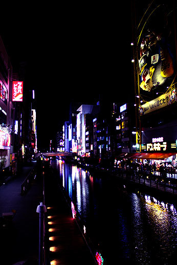 Nous avons ensuite marché jusqu'à la rue principale de Dotonbori, très animée, et connue pour les panneaux publicitaires lumineux qui se reflètent sur le fleuve qui traverse la rue.