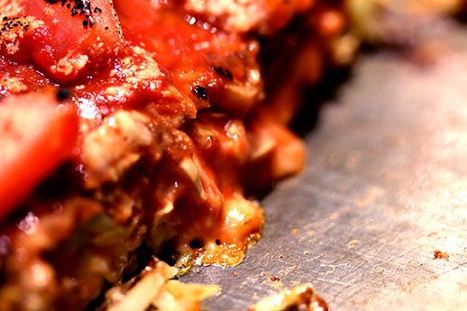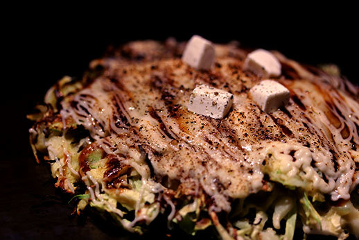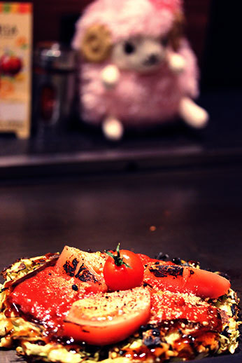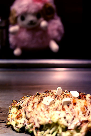 Nous sommes ensuite retournés à Osaka. Nous recherchions un kaitenzushi dans le coin de la rue de Dotonbori (ce type de restaurant qui propose des sushis sur des tapis roulants est originaire de cette ville). Cette fois, difficile de trouver quelque chose d’intéressant et végétarien (autre que des frites et pizzas) dans ce quartier réputé pour sa nourriture. Nous avons donc minutieusement regardé beaucoup de menus avant d’enfin trouver des okonomiyakis avec options végétariennes. Tant pis pour les sushis !