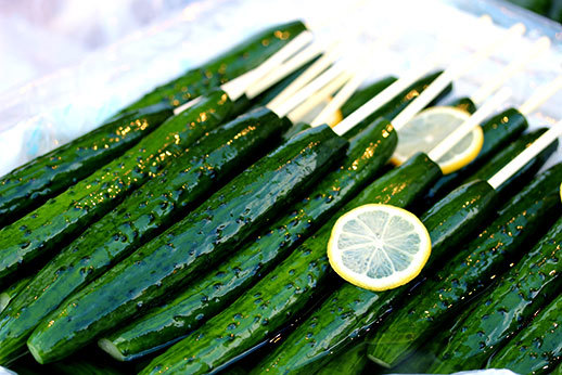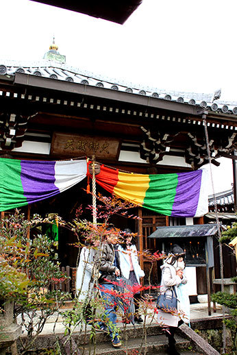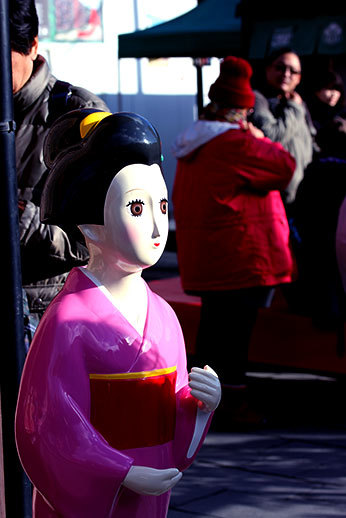 La nourriture de rue vendue à Kyoto n’a rien à voir avec celle qu’on trouve dans Osaka, et c’est un véritable soulagement en tant que végétarien. Il y a bien sûr beaucoup de dango (brochettes de gâteau de riz gluant) sucrés ou salés, mais aussi en cette saison de la patate douce, ou même des concombres macérés à déguster sur une brochette ! Ce qui domine en termes de restaurants dans ces rues plus traditionnelles, ce sont aussi les plats de nouilles (udon ou soba) ou il est très facile de trouver une option végétarienne, si on ferme les yeux sur le dashi que contient sans doute la soupe dans laquelle baignent les nouilles…