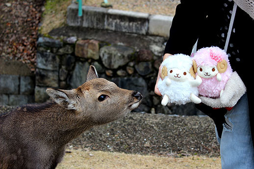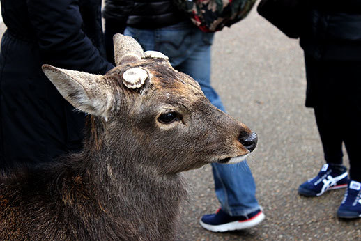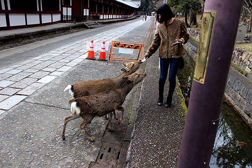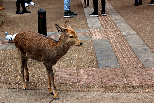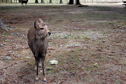 Mais la fierté de Nara semble surtout se trouver dans les 1200 cerfs et biches qui se baladent en liberté dans ce parc : la grande majorité des goodies produits et vendus dans la ville sont à l’effigie de ces animaux. Et il est vrai qu’il est étonnant de se retrouver en contact direct avec eux. Les apercevoir déambuler dans un temple est quelque chose d’insolite : effectivement, on est susceptibles de croiser ces cerfs à chaque visite, sauf dans les musées et dans l’intérieur des temples, bien sûr. Et il faut le dire, ils sont vraiment trop mignons.
