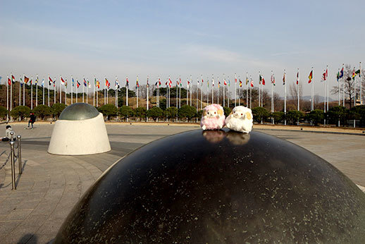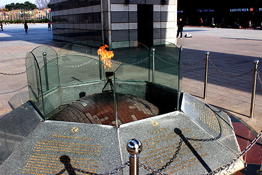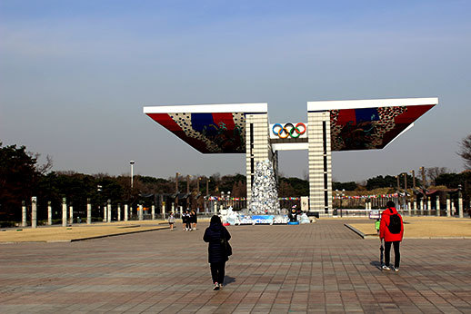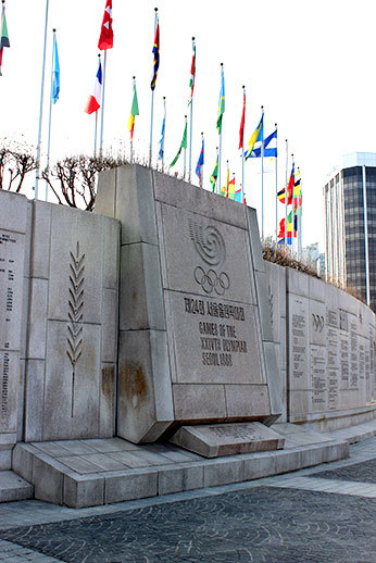 Suite à cette pause miam, nous avons pris la direction du parc Olympique des JO de 1988. La flamme y brûle toujours entourée par les drapeaux de tous les pays ayant participés à cette édition.