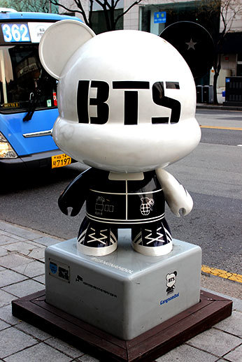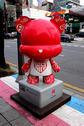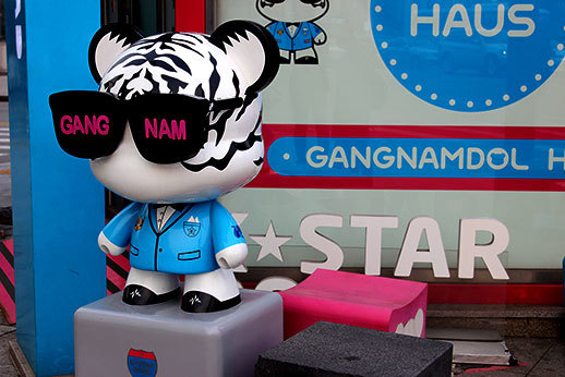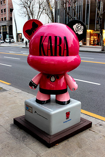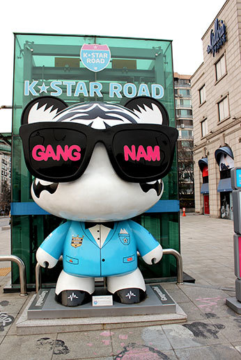 Afin de finir sur une note plus joyeuse, nous avons pris la direction du quartier de Gangnam en passant par la k-pop road. C’est une rue connue car de nombreux groupe de k-pop viennent faire leur shopping dans cette rue. C’est bon principalement des boutiques de luxes (Maison Cartier, Rolls-Royce, Dior, Burberry…). La partie amusante c’est que chaque groupe est représenté par un nounours à ses couleurs. Ils sont présents du début jusqu’à la fin de la rue.