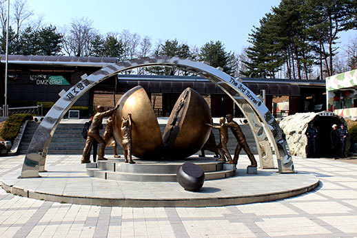 Pour cette journée, direction l’une des zones encore en guerre : la frontière qui sépare les deux Corée. Il est obligatoire de passer par des tours afin de pouvoir visiter les différents sites présents dans cette zone. Nous avions pris le tour « basique » : le parc Imjingak, le pont de la liberté, le troisième tunnel d’infiltration, la zone d’exposition sur la DMZ, l’observatoire Dora et enfin, la station Dorasan.