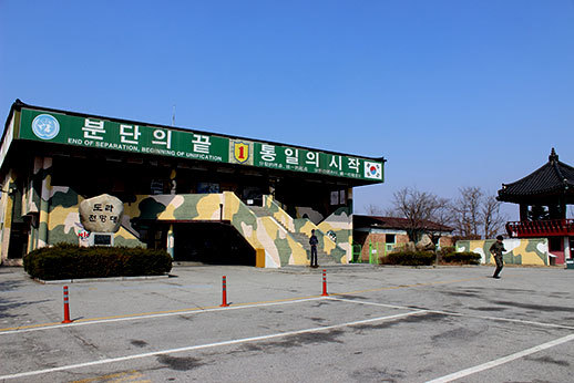 L’observatoire Dora permet d’avoir un aperçu vague sur la Corée du Nord. On peut apercevoir un village (Kijong-Dong) qui se situe seulement à 2.2km avec un drapeau nord-coréen qui flotte à une hauteur de 160m. Ce village est en réalité un faux et servait de propagande au Nord. Les habitations s’allument quartier par quartier à heure fixe et les seules personnes qui l’habitent sont les employés de maintenance.