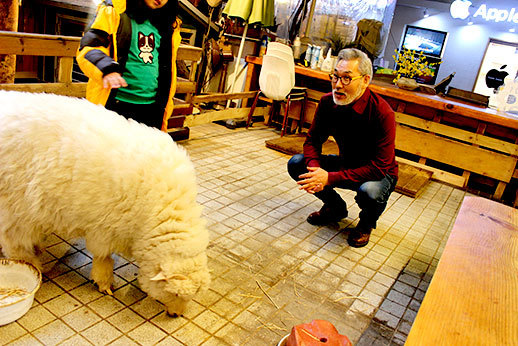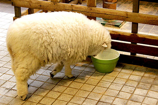 Ce café reprend ce principe mais en remplaçant les chats par deux moutons. Lors de notre visite, les deux moutons présents étaient Honey et Sugar. C’est étrange et impressionnant de voir deux moutons au milieu de la ville. L’espace n’est pas très grand (lieu en plein dans la ville) mais le propriétaire en prend soin.