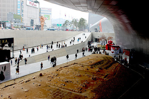 Cette journée a commencé par la visite du Dongdaemun Design Plaza (DDP). Cet endroit se situe entre un musée et un espace de création pour des artistes. Le jour de notre visite se tenait la Fashion Walk de Séoul. Il y avait donc du monde un peu partout.