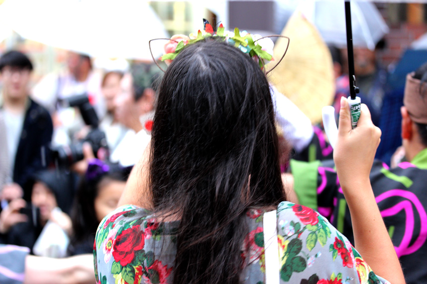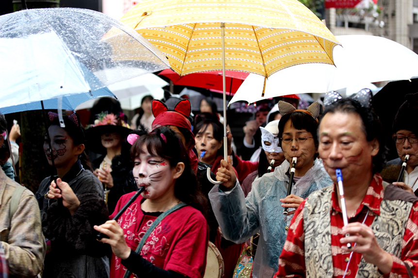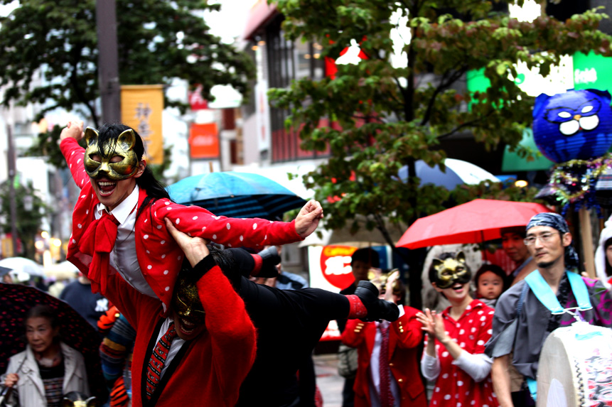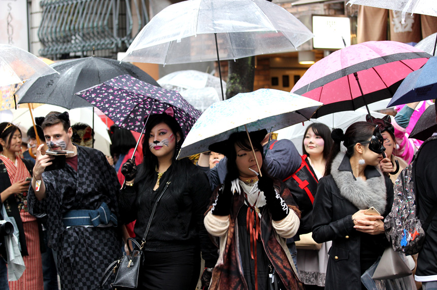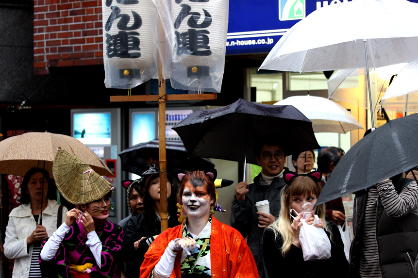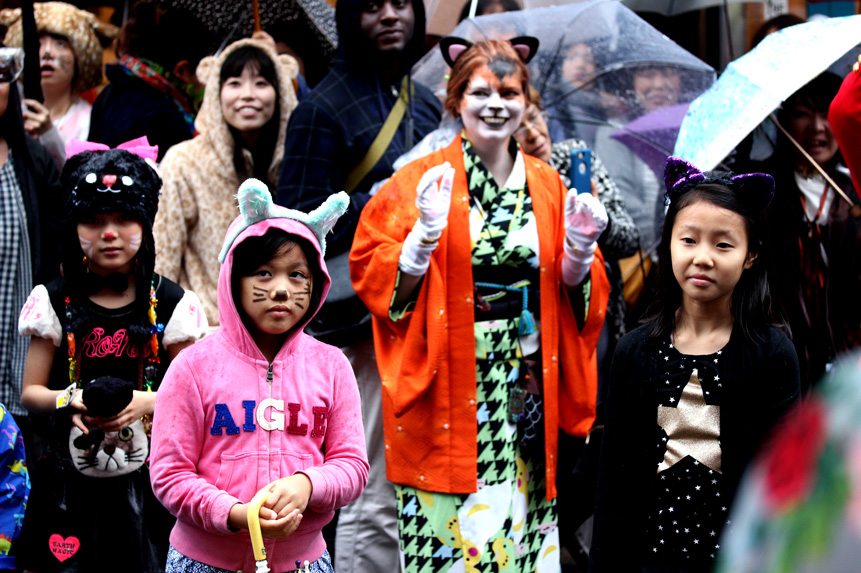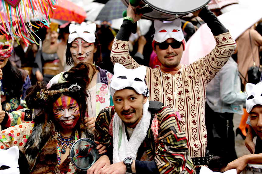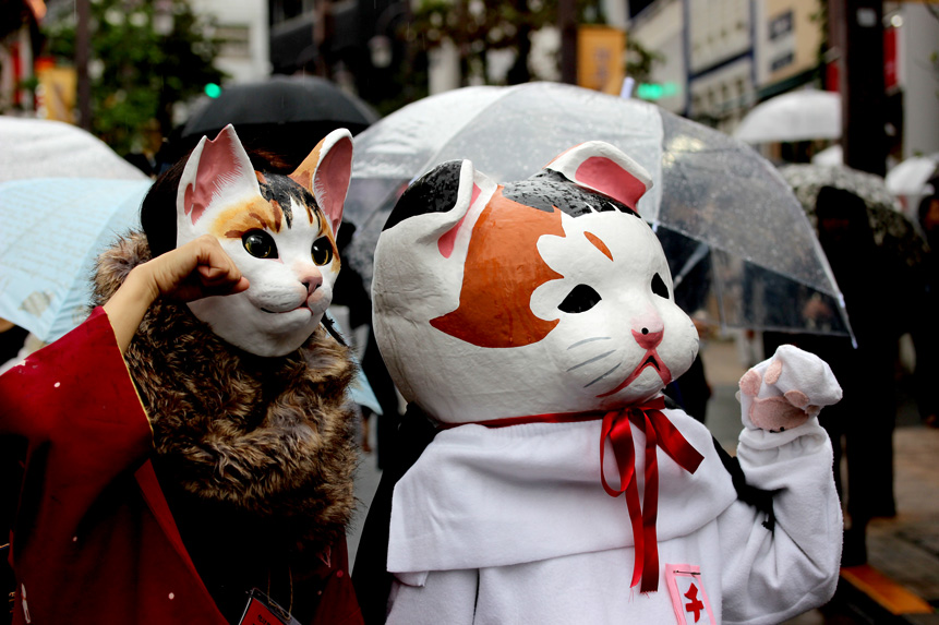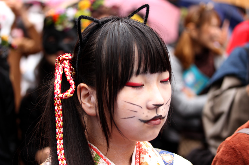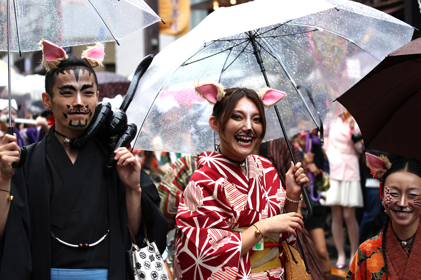 Le principe de ce festival, c’est que les gens doivent venir déguisés en chats. Cela va du costume improvisé au 100 yen shop avec de simples oreilles de chats à la panoplie complète avec maquillage et tenue élaborée.