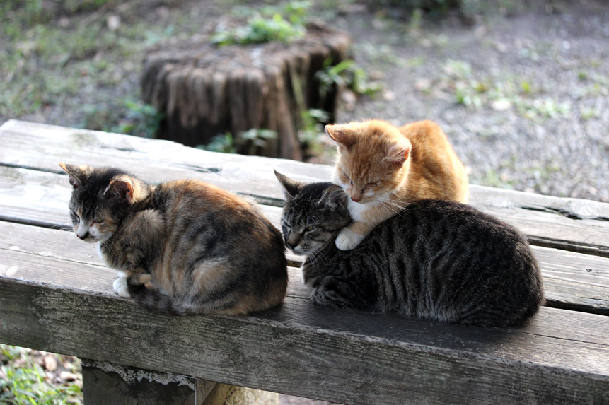 Nous avons été surpris de voir autant d’animaux : des carpes koïs, des corbeaux, et surtout, une bande de chats sauvages près de l’entrée, qui n’avait pourtant pas l’air très gênée par les nombreux visiteurs du jardin.