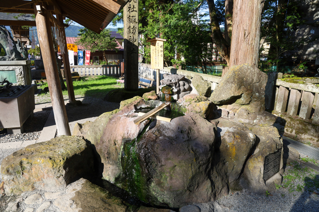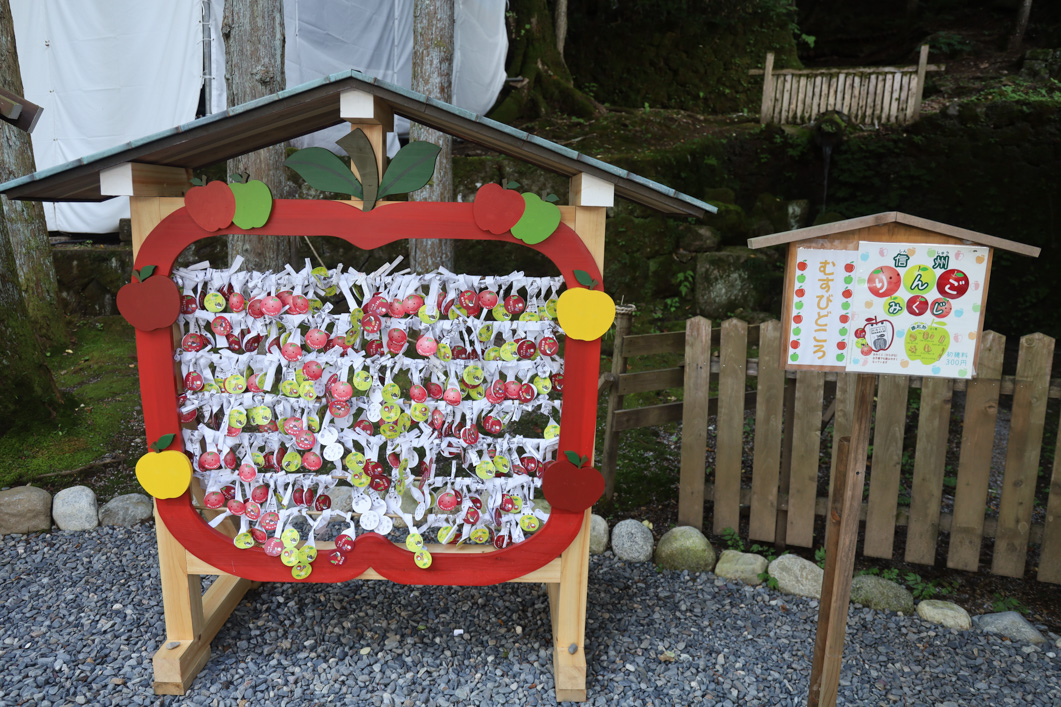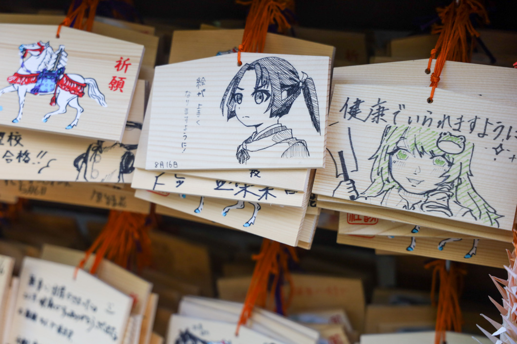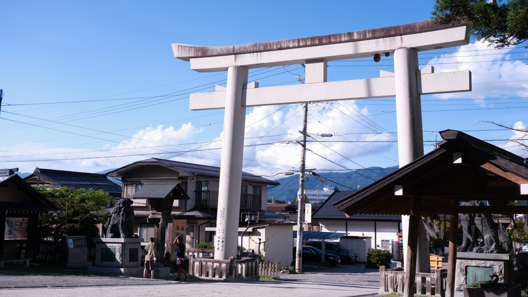 Seconde destination, le temple de Suwa Taisha. Il apparait dans un anime sorti récemment, et c’est pourquoi quelques références y sont glissées. Nous n’avons pas encore vu cet anime mais nous profitons de la visite de ce temple, vieux de 1 200 ans, un des plus anciens sanctuaires existant au monde.