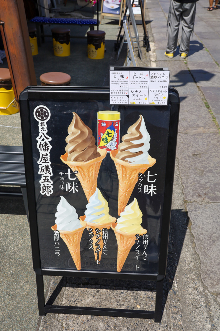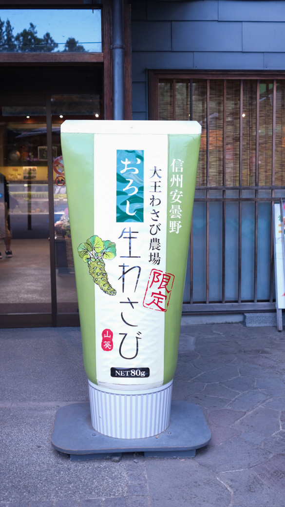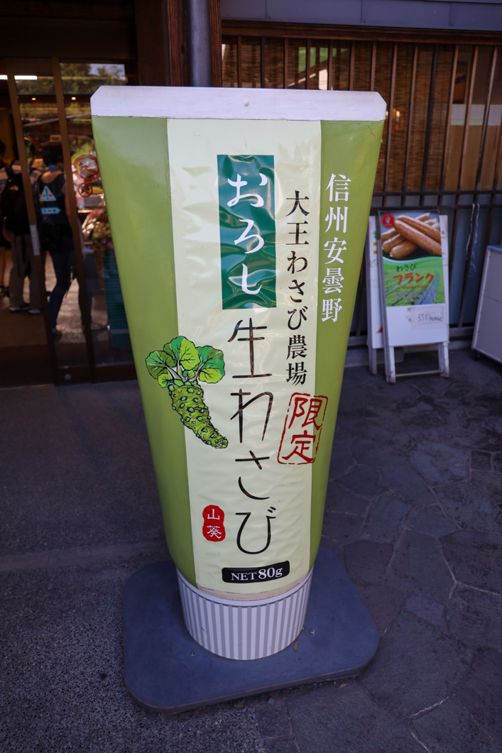 Déjà sur le retour, nous nous arrêtons à la plus grande ferme de wasabi du Japon. Déçus par les korokke, la bière ou l’oyaki au wasabi, nous décidons de donner sa chance à la glace et contre toute attente, elle n’est pas aussi bizarre que prévu.